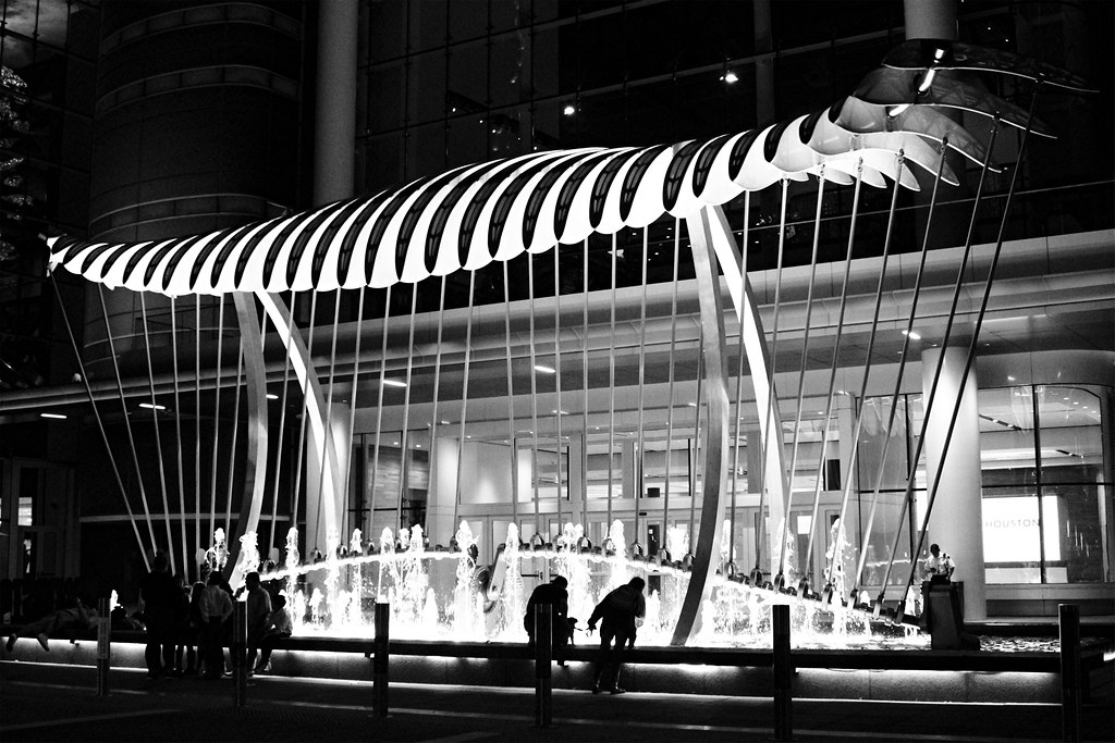 Esta impresionante escultura cinética aúna arte y movimiento en pleno centro de Houston. Situada cerca del Centro de Convenciones George R. Brown, la hipnotizadora instalación cuenta con altísimas «alas» de aluminio que se abren y cierran con gracia, reflejando la luz y el movimiento como una criatura viva. La combinación del agua resplandeciente, el dinámico diseño de la escultura y el telón de fondo urbano que la rodea hacen de Wings Over Water un lugar de ensueño para la fotografía. Tanto si la ve en movimiento durante el día como bellamente iluminada por la noche, es un elemento que no puede perderse.